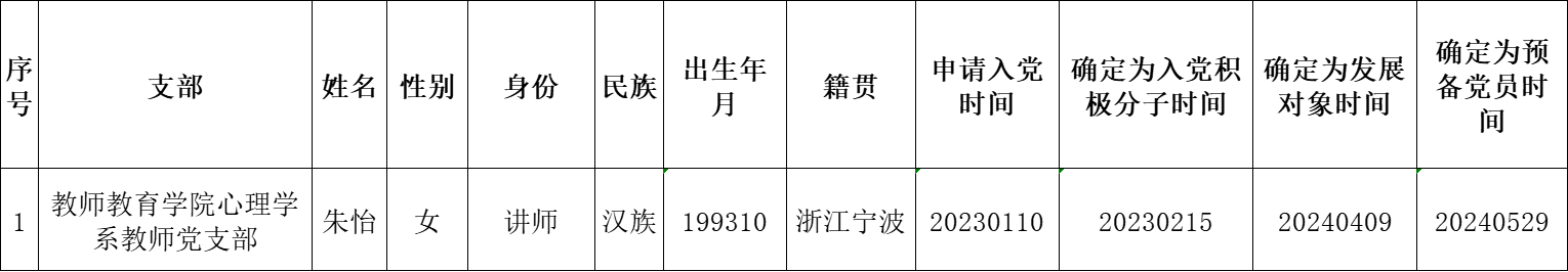 根据《中国共产党发展党员工作细则》中发展党员的文件要求,经对朱怡同志的接收为中共预备党员条件、接收程序等进行严格审查。2024年6月13日,学院党委会集体审议讨论了朱怡同志的接收问题。党委委员共7名,实到会7名。经逐个审议和表决,7名党委委员一致认为朱怡同志已具备预备党员条件,同意批准接收为中共预备党员,预备期为2024年5月29日至2025年5月28日。具体信息如下:
