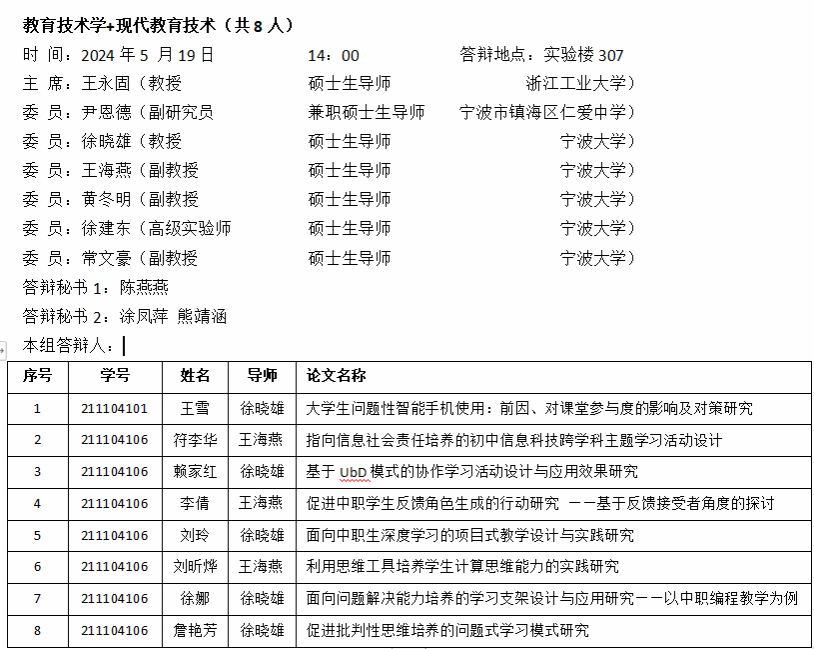 18porn 2024届硕士学位论文答辩公告(教育技术)