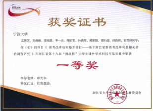 2019浙江省第十六届“挑战杯”大学生课外作品竞赛特等奖
