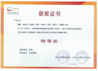 2017浙江省第十五届“挑战杯”大学生课外作品竞赛特等奖