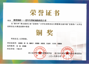 2019年浙江省互联网+大学生创新创业大赛铜奖