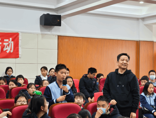 主门前,快门按下,一张张笑脸与校园美景相映成趣,将此次研学的珍贵记忆永久留存。随后,大家走进实验楼 211 报告厅,聆听王成如副教授带来的专题讲座《历象日月星辰 -- 漫谈天文学的奥秘与魅力》。王教授以幽默风趣的语言、妙趣横生的宇宙案例,将浩瀚星空的神秘面纱层层揭开,从行星运转到星系演化,从古代天文观测到现代航天探索,深入浅出的讲解让同学们沉浸其中,不时发出阵阵赞叹。讲座现场互动热烈,同学们踊跃提问,探索宇宙的种子在心中悄然萌发。