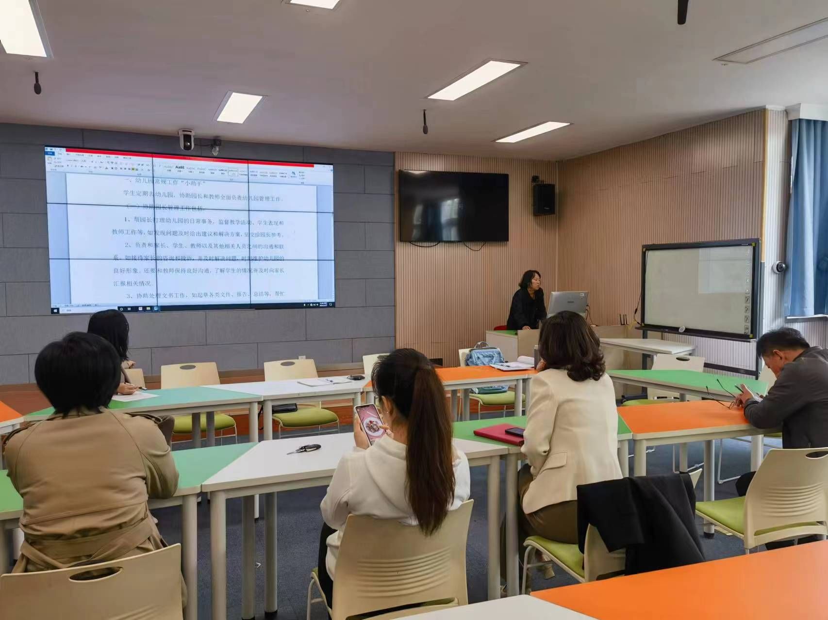 学前教育系教师党支部结合教师专业特长,进一步完善培养目标,与春雨书院携手,就第二课堂活动方案展开讨论。郝俊、罗娜老师结合自己的研究和思考,设计早教、特教方面的活动方案;王铁群老师走访多家幼儿园,熟悉幼儿园管理现状,在此基础上设计了助管活动的方案和具体活动安排。大家分组就两个方案展开讨论,提出意见和建议。第二课堂的开设对教师的专业素养、理论功底和教学能力提出了更高要求,激励着教师们勤奋学习、刻苦钻研、求真务实、勇于创新。