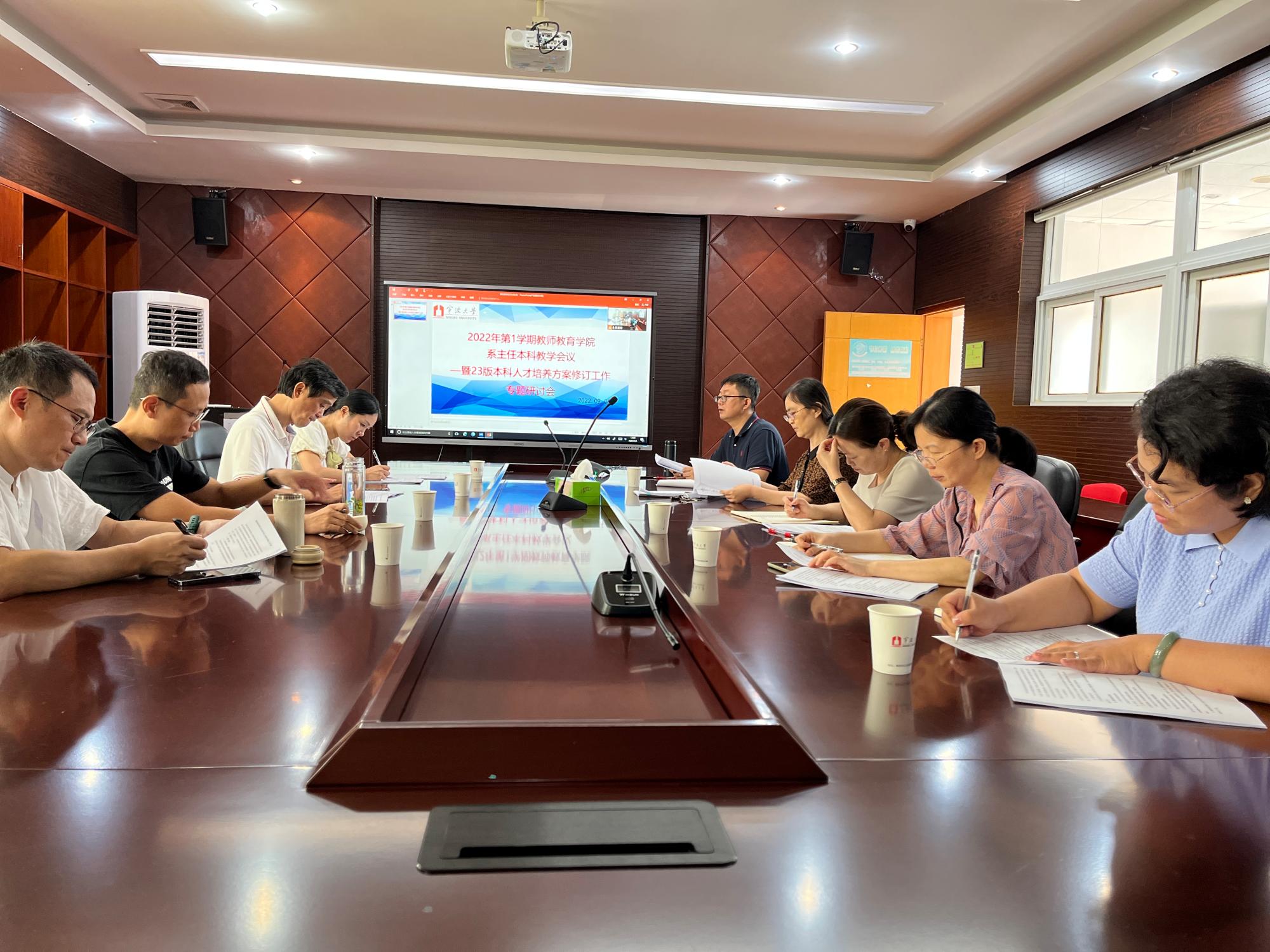 2023版本科人才培养方案修订工作方案》,他指出本次培养方案修订是学院教学建设的大工程,各专业应根据学校和学院修订工作的具体要求以及时间节点展开修订,重点需关注培养目标、毕业要求、核心课程、课程体系等。李慧仙副院长根据师范类专业认证要求对培养方案的修订提出了建议和要求。与会人员对本次培养方案修订工作中可能会出现的问题提出了疑惑,并展开积极讨论。