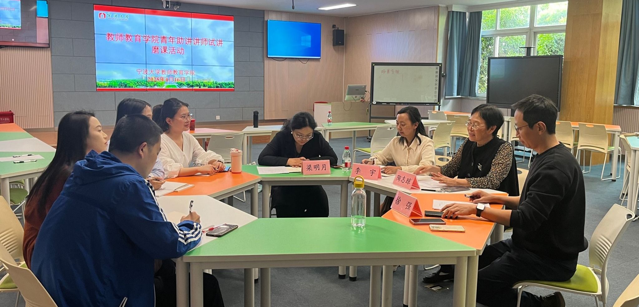 在教育楼208成功举办青年助讲教师首次试讲磨课活动。陶志琼、梁明月、徐强和李宇四位专家应邀对三位青年教师进行指导,部分青年教师到场观摩学习。
