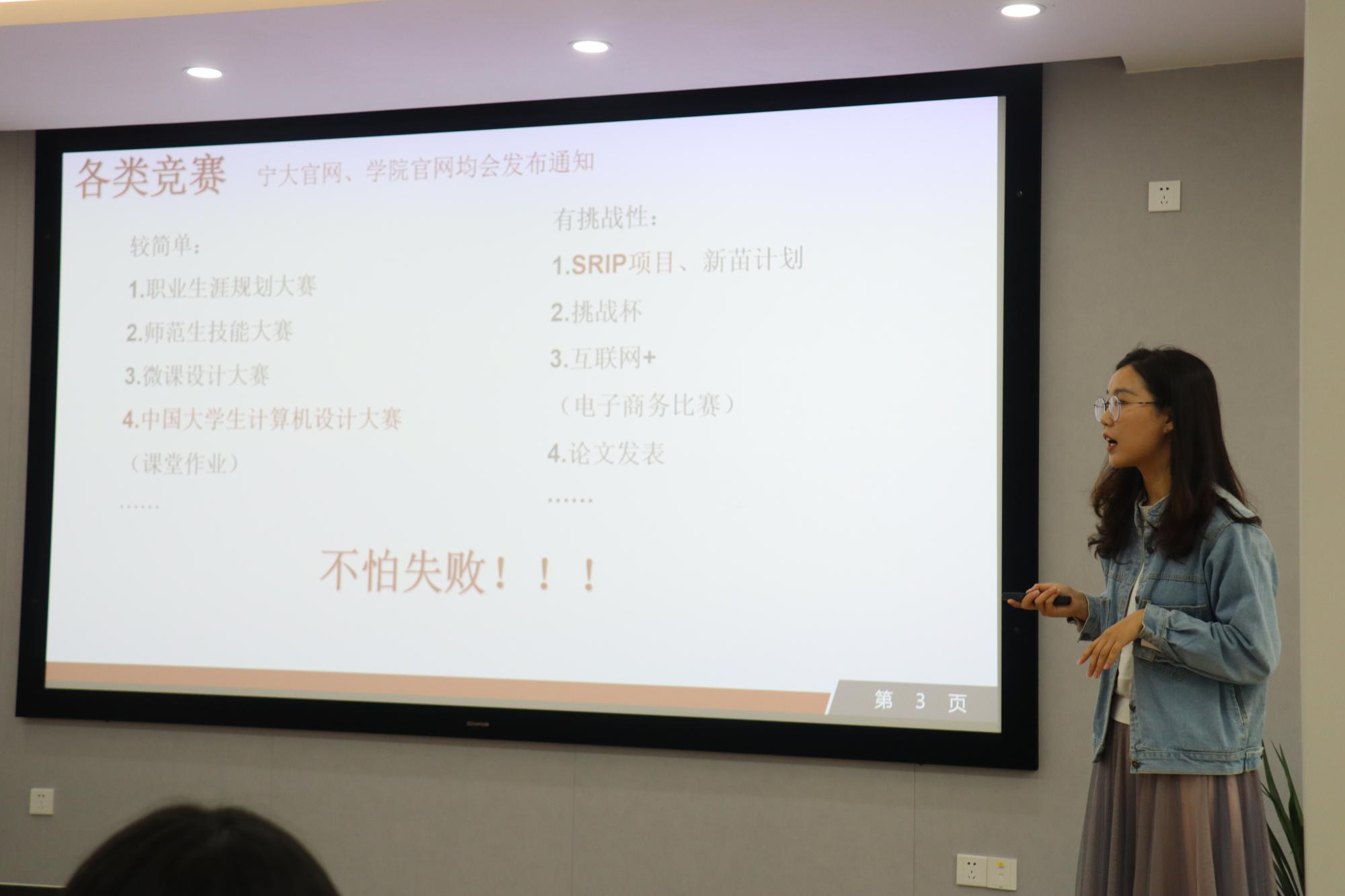 首先向我们分享的是徐文倩学姐,徐文倩学姐向同学们介绍了自己的学生工作经历,在谈到学习方面时,她讲述了自己参与各类竞赛的过程,鼓励同学们积极参加各种活动和竞赛,不要害怕失败。接着,她分享了在贵州省晴隆县第六小学支教有意思的经历,并简单解读了研支团推免条件。随后,徐文倩学姐劝勉同学们做好时间管理与规划,充实本科学习生涯。第二位分享的是张烨敏学姐。张烨敏学姐特别强调了学生干部经历的重要性,她曾任18porn