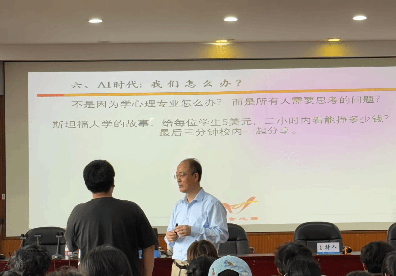 互动环节中,吕老师与学生们就AI时代心理学发展展开热烈讨论。他强调,心理学专业学生要善用学校资源参与科研项目,将系统的理论储备转化为专业优势。面对AI浪潮,吕老师指出"AI是工具而非对手",心理学从业者应当聚焦提升人性温度和专业技能这两大核心竞争力。
