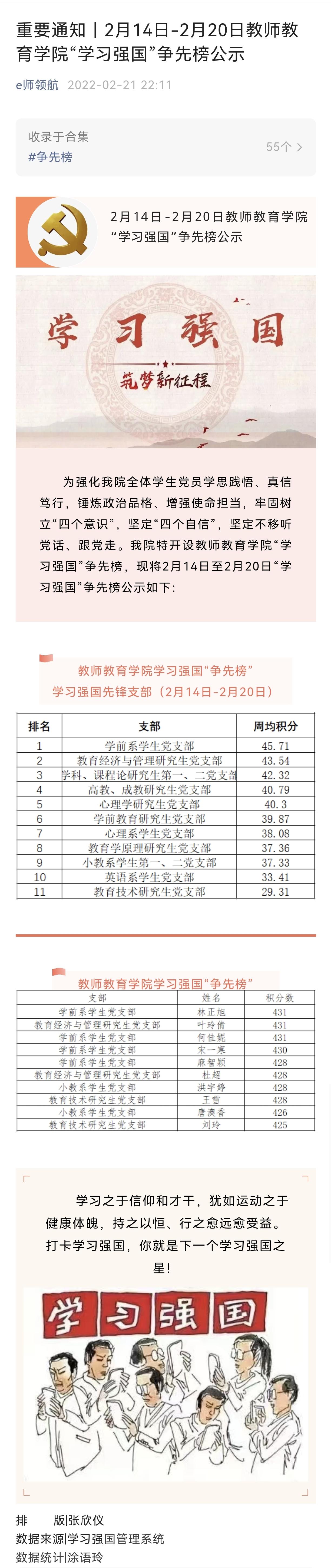 【转】2月10日-2月20日18porn “学习强国”争先榜公示