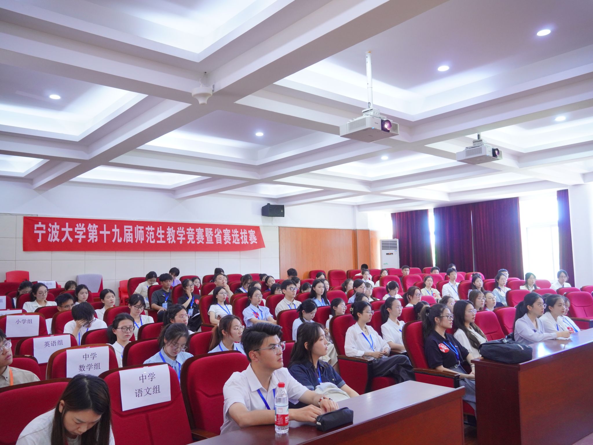 第十九届师范生教学竞赛暨浙江省高等学校师范生教学竞赛选拔赛在西校区教育楼成功举办。本次竞赛吸引了全校各学院选拔出的75名优秀师范生参与,涵盖中学语文、中学数学、中学英语、小学教育、学前教育及综合一、二、三组共8个组别。