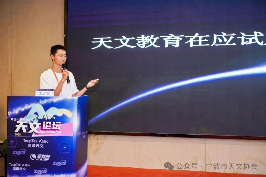 和宁波市天文爱好者协会共同举办,来自宁波市“科惠百校”成员学校、科技新苗天文学团队以及浙江省内各中小学科学教师代表180余人参与了本次活动。活动聚焦于“‘双减’背景下如何做好科学教育‘加法’”这一热点,特别邀请全国各地青少年天文爱好者共聚一堂,通过主题报告分享实践经验与创新思考。论坛内容覆盖青少年这一天文教育的实施主体与受益群体,以多元视角,共话天文教育未来,凝聚天文科技新兴力量。