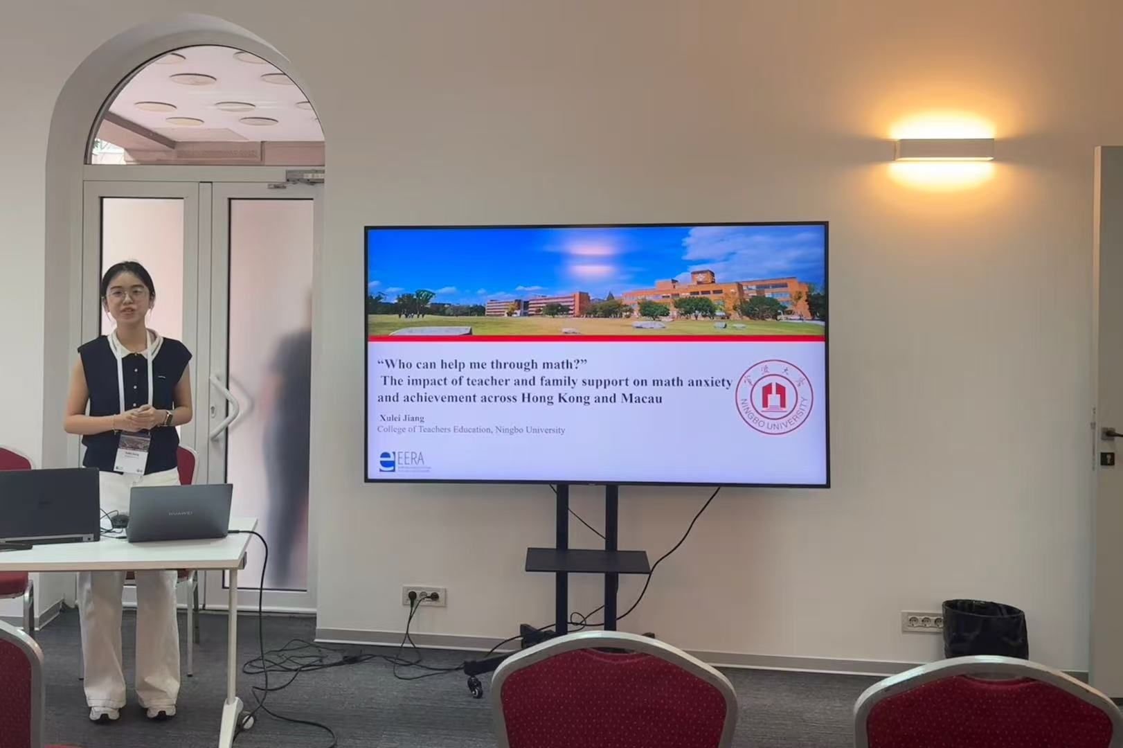 在 Network 24 “Mathematics Education Research”分会场,24级硕士研究生蒋栩蕾作题为《Teacher and Family Support in Mathematics: Gender Differences in Anxiety and Achievement in Hong Kong and Macau》的会议报告,该报告由18porn