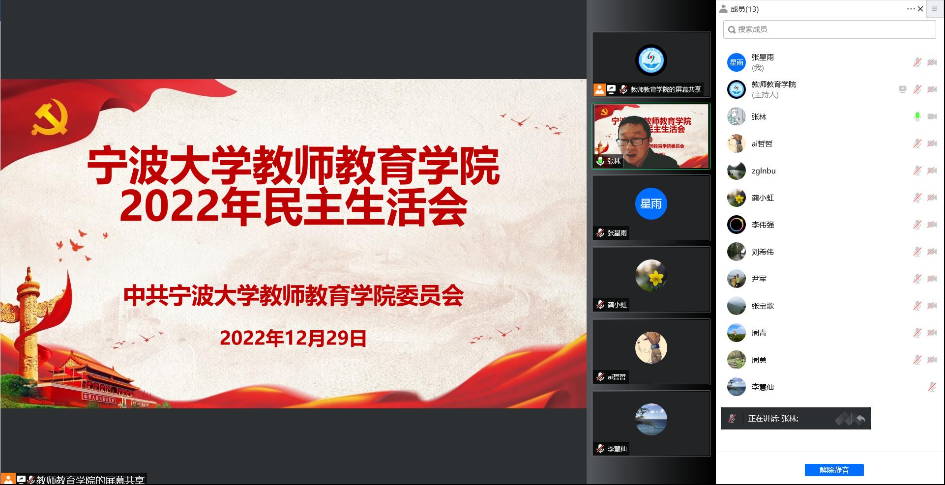 领导班子线上召开了2022年度民主生活会。校党委委员周青出席会议,学院民主党派代表、教师代表列席。