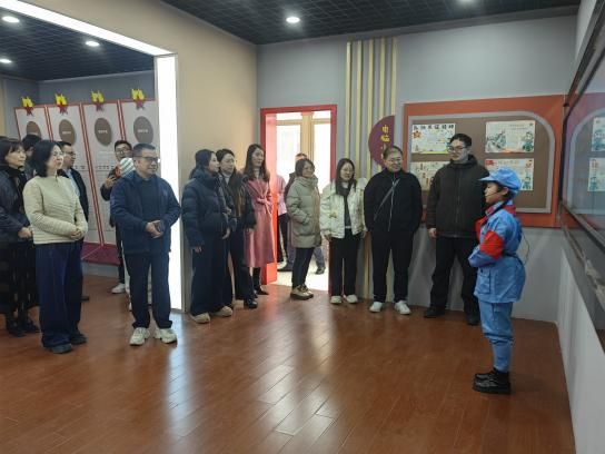 浙江省四明山红军小学是浙江省第一所红军小学,有着近120年办学历史和深厚红色底蕴,学校秉持“以红养正,以正启蒙”办学理念,开展了红色教材编制、红色书画展、民乐团等特色教育活动,构建起全方位红色育人体系。在浙江省四明山红军小学王建波书记的引导下,党员教师们实地参观了红色文化教育馆等校园红色文化设施,深入了解学校红色课程开发、课本剧展演、模拟长征实践等特色育人举措,真切感受革命老区学校的红色办学传统。