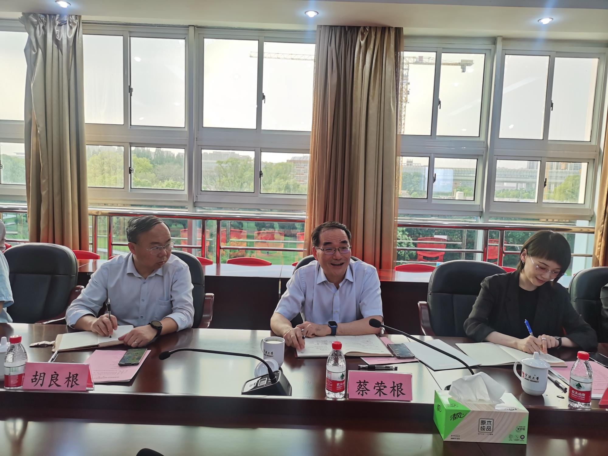座谈会上,学院分管领导围绕学科科研、研究生教育、本科教学、春雨书院建设等专项工作进行了汇报。蔡荣根认真听取与会人员的发言,不时与大家交换意见和看法。