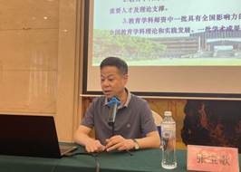 教育学科发展状况作简要介绍。随后,朱鸿飞处长对浙江省中小学教材管理政策进行了解读,并做相关主题报告。接着,雷浩教授围绕“教材使用监测:国际经验与本土建构”主题分享研究成果,强调要重视教材使用监测的时代价值,通过分析忠实、利用、诠释、互动四个视角下的教材使用内涵,对比七项教材使用监测的国际框架,从学校、教师、学生三个层面建构了学校教材使用规范的监测指标。最后,陈柏华教授分享了高中英语教材插图中的性别刻板印象研究成果,通过比较分析人教版新旧教材,提出了以下反思与建议:一是完善教材编写的政策与法规;二是构建多学科、多领域、多阶层人士组成的插图编辑选用小组;三是成立国家和省级层面的教材性别刻板印象审查小组;四是加强对教育插图编者性别平等意识的引导。