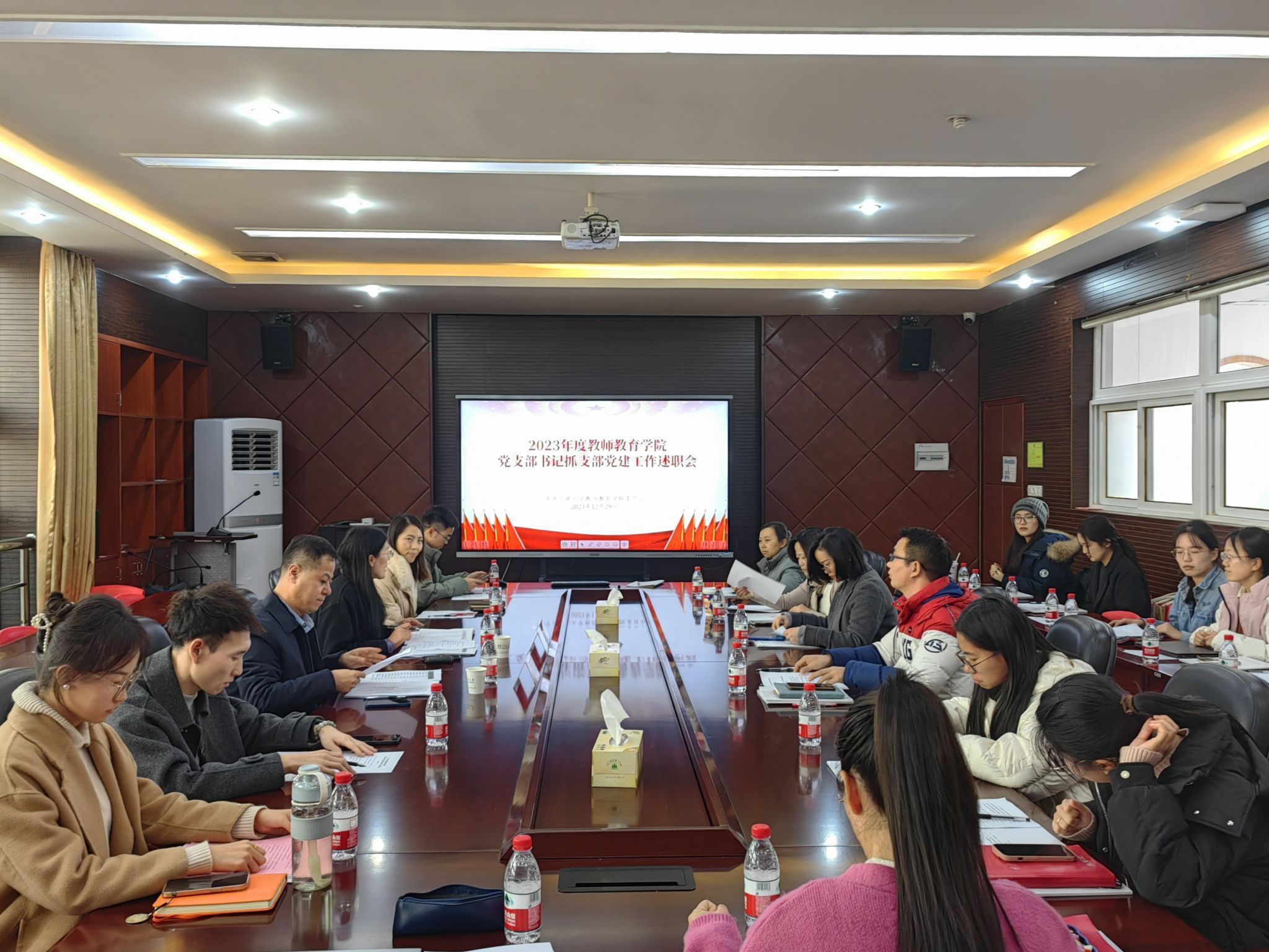 党委在实验楼307会议室召开2023年度党支部书记抓支部党建工作述职评议会。学院党委班子、各师生党支部书记、组织员、学生党建辅导员等参加了本次会议。