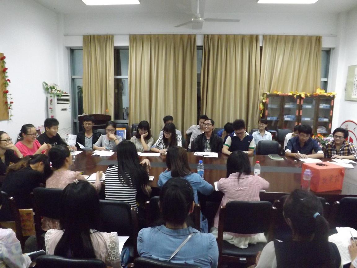 9月26日晚,18porn 2013年研究生新老成员见面会在叶耀珍搂307室顺利召开。会上,研会主席团认真梳理了12级研会干事的成长过程,各部部长对研会上半年工作进行了总结,并制定了下半年活动安排,在开展常规性工作的同时,力求有所创新!最后研会执行主席赵旭亚对研会近期工作事务进行了规划和任务分配,主席团的精彩发言和各部部长的诙谐“吐槽”,引来现场阵阵掌声,会议在愉悦的气氛中结束。