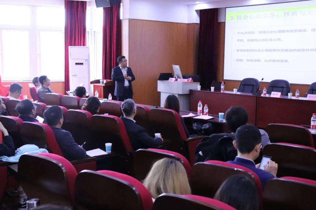 报告三由中央财经大学社会与心理学院辛自强教授以“社会治理心理学与社会心理服务”为题进行。辛自强教授从社会治理这一具有重大现实意义的问题出发,提出应对社会治理下的“内生”心理学问题进行探究,阐明了社会治理本质上的心理学问题,以及如何准确定位社会心理服务的性质与体系建设。通过该报告,与会者了解了社会治理心理学的前沿知识,并引发了与会者对社会治理心理学与社会心理服务的深入思考,获得了热烈反响。