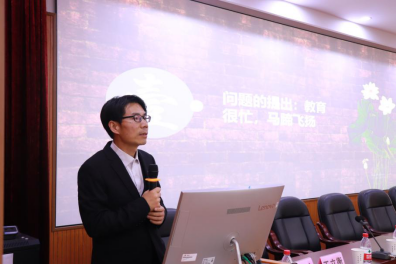 师生参与宁波市研究生学术节的情况,对广大研究生积极参与学术活动表示充分的认可,希望师院的研究生们能够继续谨记“崇德笃行,博学善诲”的院训,发挥专业特色,在学术上有追求、有成就。最后,王老师向同学们介绍了王贺元老师的教育经历和研究成果,并对王老师的到来表示热烈欢迎和衷心的感谢。随后,报告会正式开始。王贺元老师的报告主要从问题的提出、研究方法、研究发现、反思与讨论这几部分展开,他以专业的理论知识为基础,结合自身的访学经历,以风趣幽默的语言进行了报告。第一部分主要对我国教育“忙”的现状进行分析。对教育中出现的“快”字当头的功利主义进行了批判。进而对加拿大教育中的“慢”的特点进行分析、评价与思考。第二部分主要介绍了加拿大教育运行的基本情况,并指出了“慢”的四个维度分别是:时间、空间、轨迹和冲突处理。第三部分对我国目前的教育现状进行了反思与讨论,并为同学们的学习提出了许多切实可行的建议。最后,王老师对报告进行了总结,提出了我国的教育是不是可以慢慢地陪着我们走完一生的愿景。
