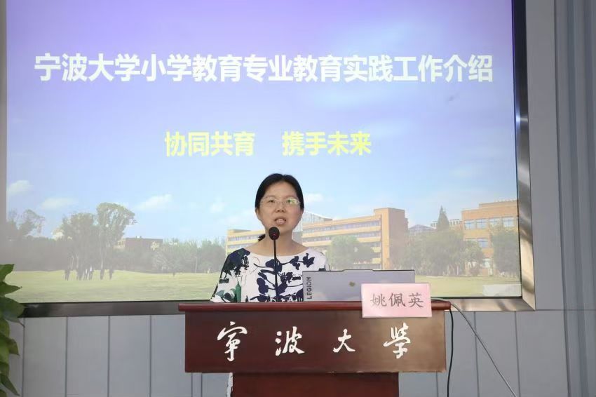 接着,系主任袁恺杰介绍小学教育专业的发展历程以及服务区域发展情况;副系主任姚佩英从实习制度、课程设置、实践现状和合作愿景四个方面展开介绍小学教育实践工作情况。