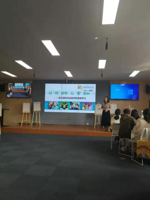 教育智慧大讲堂第102讲“幼儿园科学活动的深度学习”在西区实验楼208成功举行。讲座由宁波市鄞州区钟公庙街道中心幼儿园教育集团园长李丽丽主讲、学院学前教育系系主任汪洁萍教授主持。