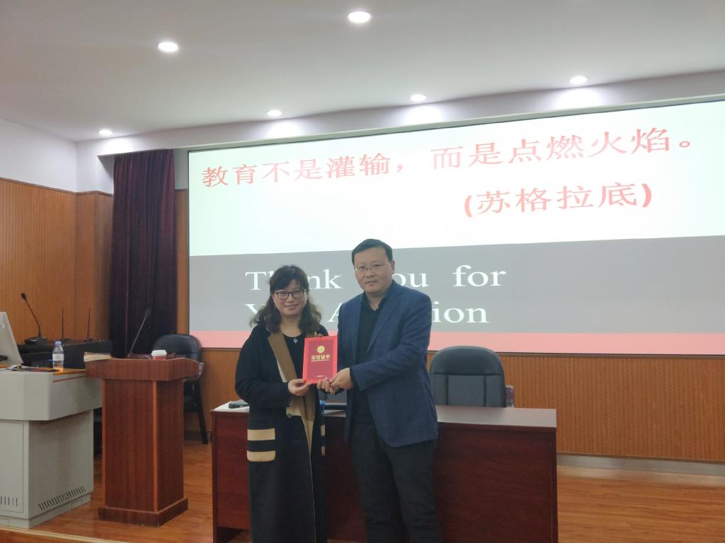 “教育智慧大讲堂”第103讲在实验楼211成功举行。本次讲座特邀宁波高新区教研室中小学英语教研员、高级教师章宁为英语系各年级同学开讲,英语教育系系主任张光陆教授主持。
