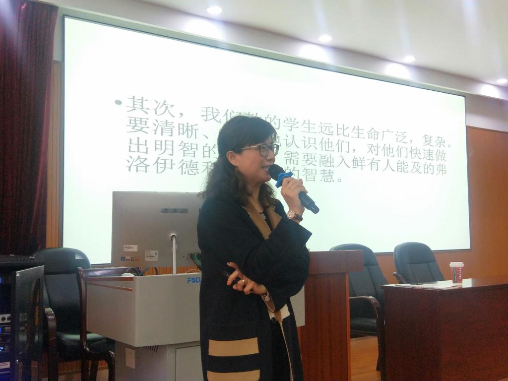 章宁老师从“三个一”,即一句话,一本书,一个梦想切入,以“WeTeach Who We Are”为题,通过几个特殊的时间节点分享了从教20余年的教师经历。她表示,优秀的教学不仅在于教学技巧的纯熟,真正的成功源于教师正直、诚实的教学品质。对优秀教师而言,认识自我与认识学生和学科是同等重要的。过一种沉浸的教育生活,有思想、有境界,我们的教育人生才会有特色。