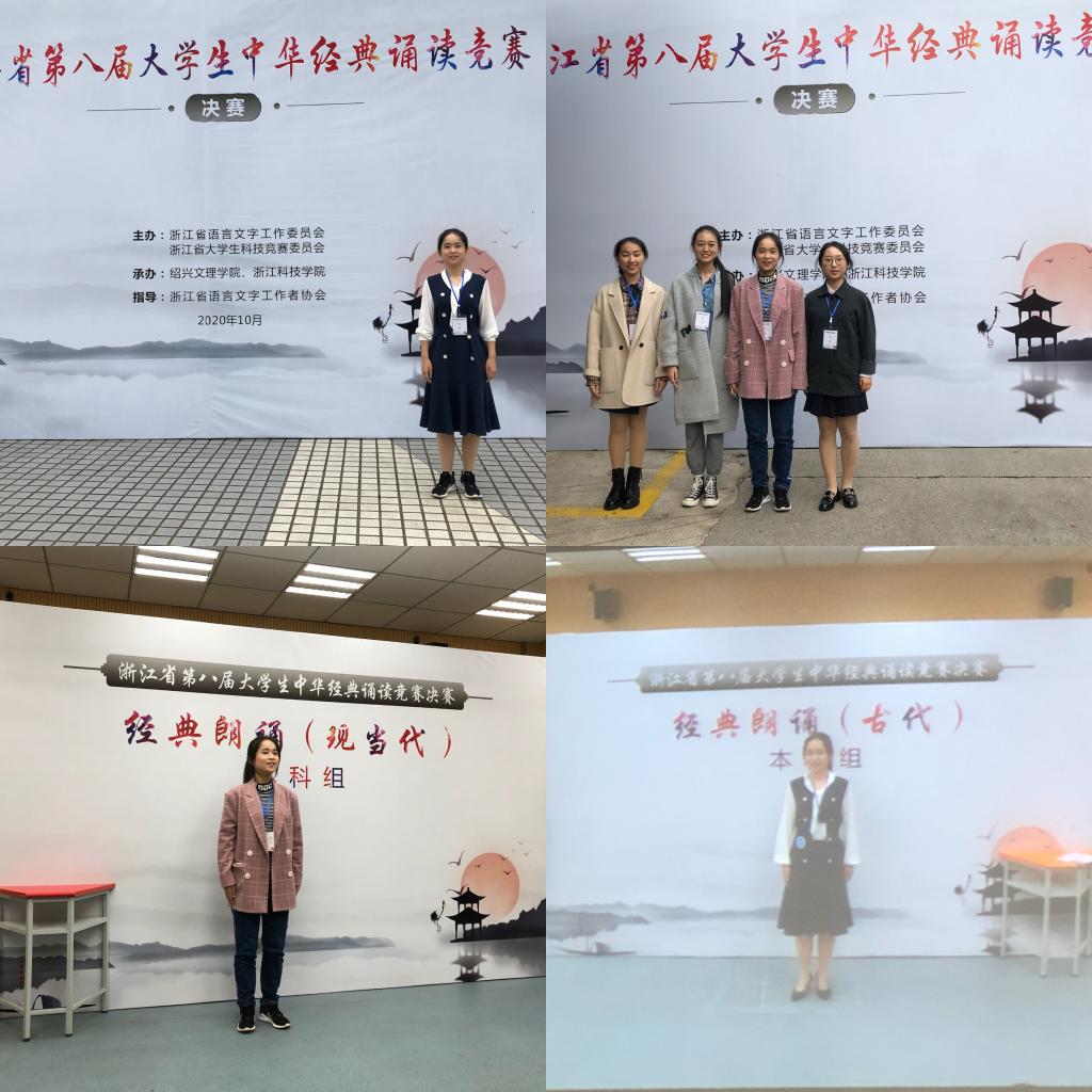 10 月17日- 18日,“浙江省第八届大学生中华经典诵读竞赛”在绍兴文理学院举行。本届竞赛由浙江省大学生科技竞赛委员会主办、绍兴文理学院承办,赛事项目分“回答问题”、“中华经典朗诵”和“即兴演讲”三个环节。大赛历时1天半时间,经过激烈角逐,最终,我校四位参赛选手脱颖而出,分别荣获一等奖(3项)、二等奖(1项)的优异成绩。特别,18porn