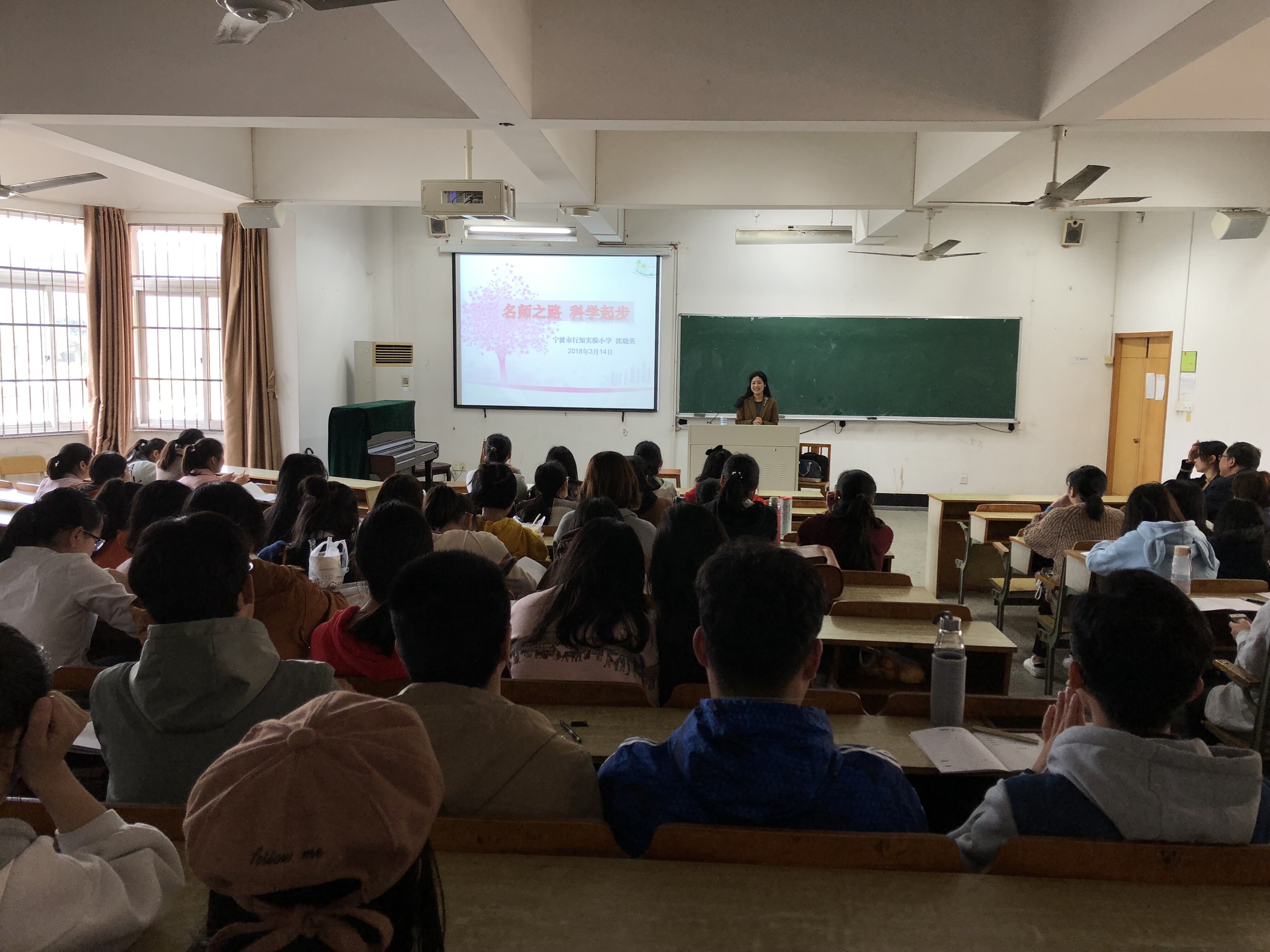首先,沈老师鼓励同学们要树立这样两个信念:教师是天底下最崇高的职业!要让教师成为人人羡慕的职业!接着,沈老师分享了她在学校的任教过程中与孩子们发生的趣事,让同学们深切地体会到孩子们的纯真善良。