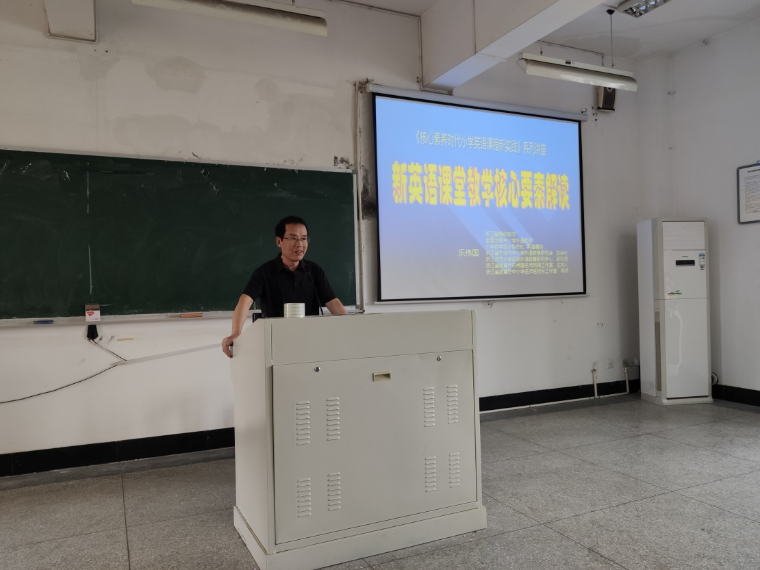 “教育智慧大讲堂”第107讲在实验楼213成功举行。本讲座特邀浙江省宁波市教育局教研室小学英语教研员,浙江省小学英语特级教师,全国优秀中小学外语教师乐伟国老师开讲。讲座由英语教育系主任袁恺杰副教授主持,陈柏华教授,王华蓉老师,王月华老师,英语教育系2019级,2020级,2021级学生参加了本次讲座。