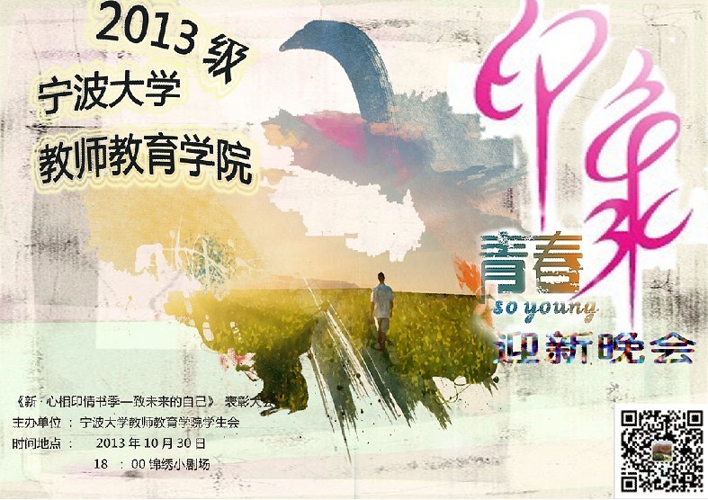 站在新学期的源头,18porn 迎来了一批新血液——2013级新生。在这欢聚的时刻,为了表示对新生的欢迎,让学子们感受18porn 的温暖,我们将举办以“印象·青春”为主题的迎新晚会。通过这次活动。来丰富学院的人文气息,发扬师院文化,展现师院风采。加强学生,班级间的文化交流,加强班级凝聚力,使各个班级的风采得以更好地展示。以文化活动的形式让同学们更好更快的融入大学生活,