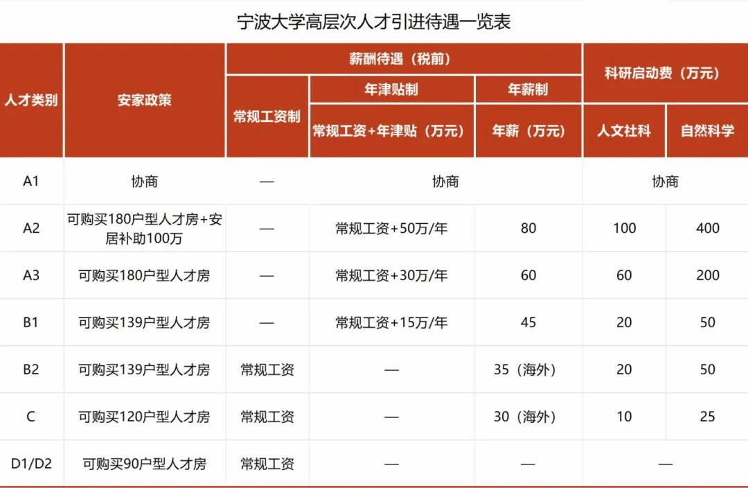 生活优护:学校根据人才类别和实际情况提供过渡性住房或租房补贴,B类及以上人才可协助安排配偶工作等;宁波市乘坐公共交通、场馆健身锻炼等免费。
