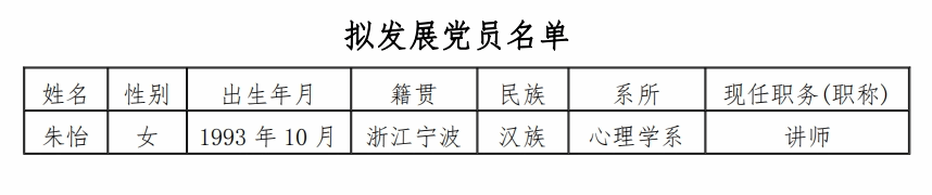 根据学校党委规定,决定将拟发展为中共预备党员的1名同志予以公示,公开征求意见。现就有关事项通告如下: