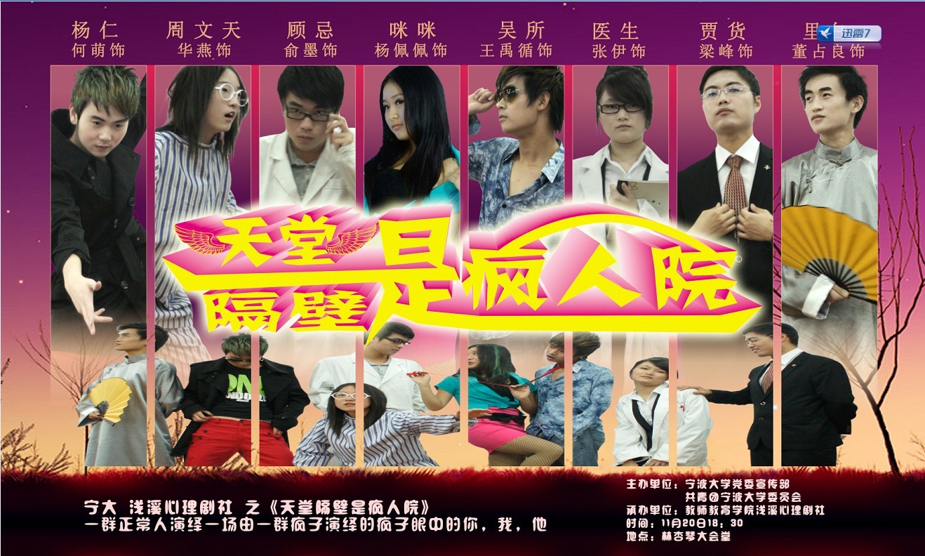 浅溪心理剧社《天堂隔壁是疯人院》专场演出将于11月20日(本周日)晚18:30在18porn