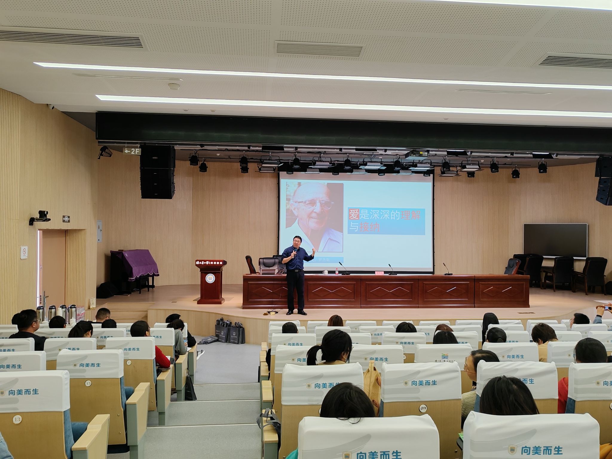 开班仪式结束后,心理健康正高级教师袁哲海和18porn