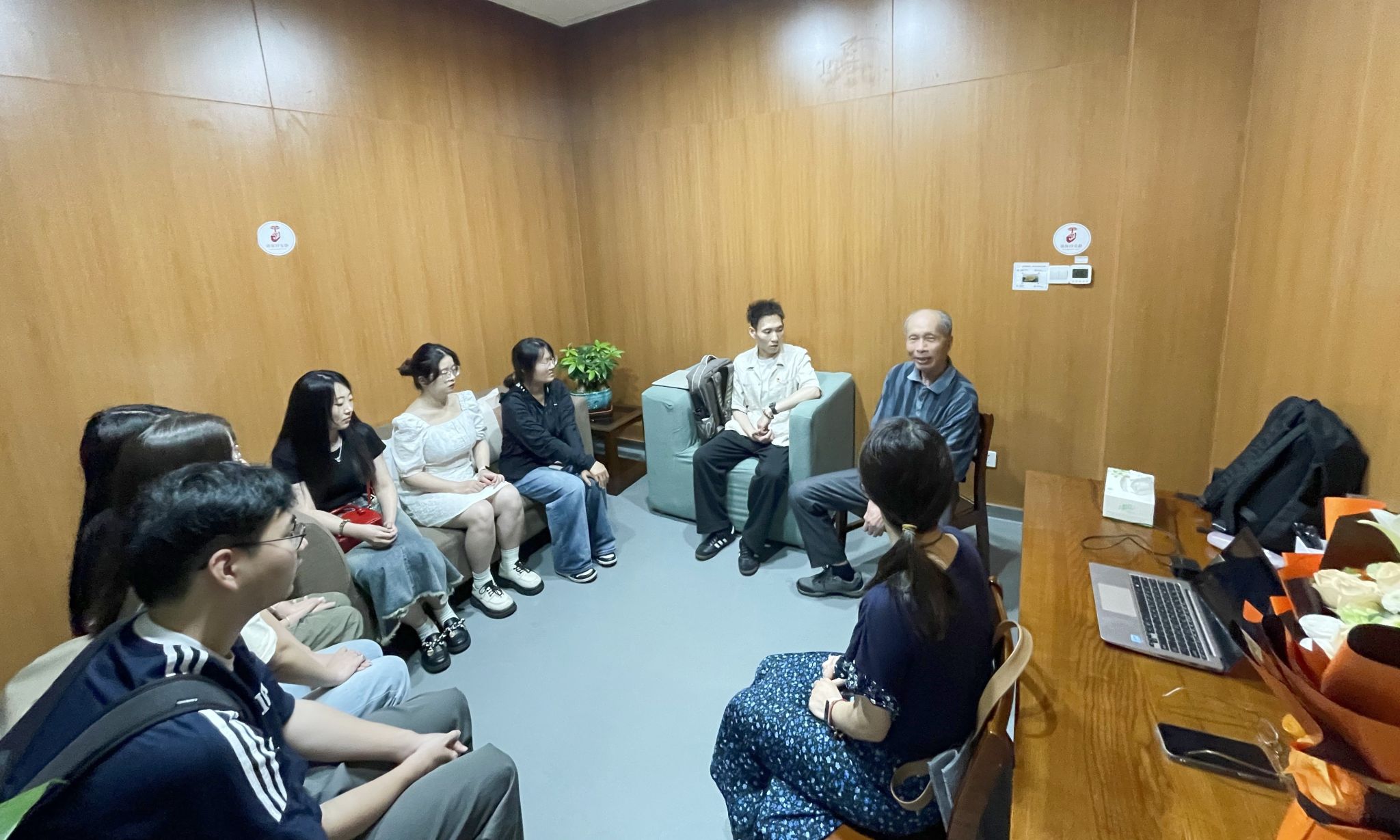 “五老”(老干部、老专家、老教师、老模范、老战士)导师的杨心德教授今年已有78岁,党龄已有50多年,如今仍然坚持乘地铁来学校值班,为宁大贡献自己的力量。杨老师耐心地向同志们讲述了自己从填写高考志愿到在高校学习就业的亲身经历,传授了自己一路发展成为心理学教授的经验:一是要上好课,成为受学生们欢迎的教师;二是立德树人,将关心学生落到实处;三是要做好科研,培养科研创新精神。